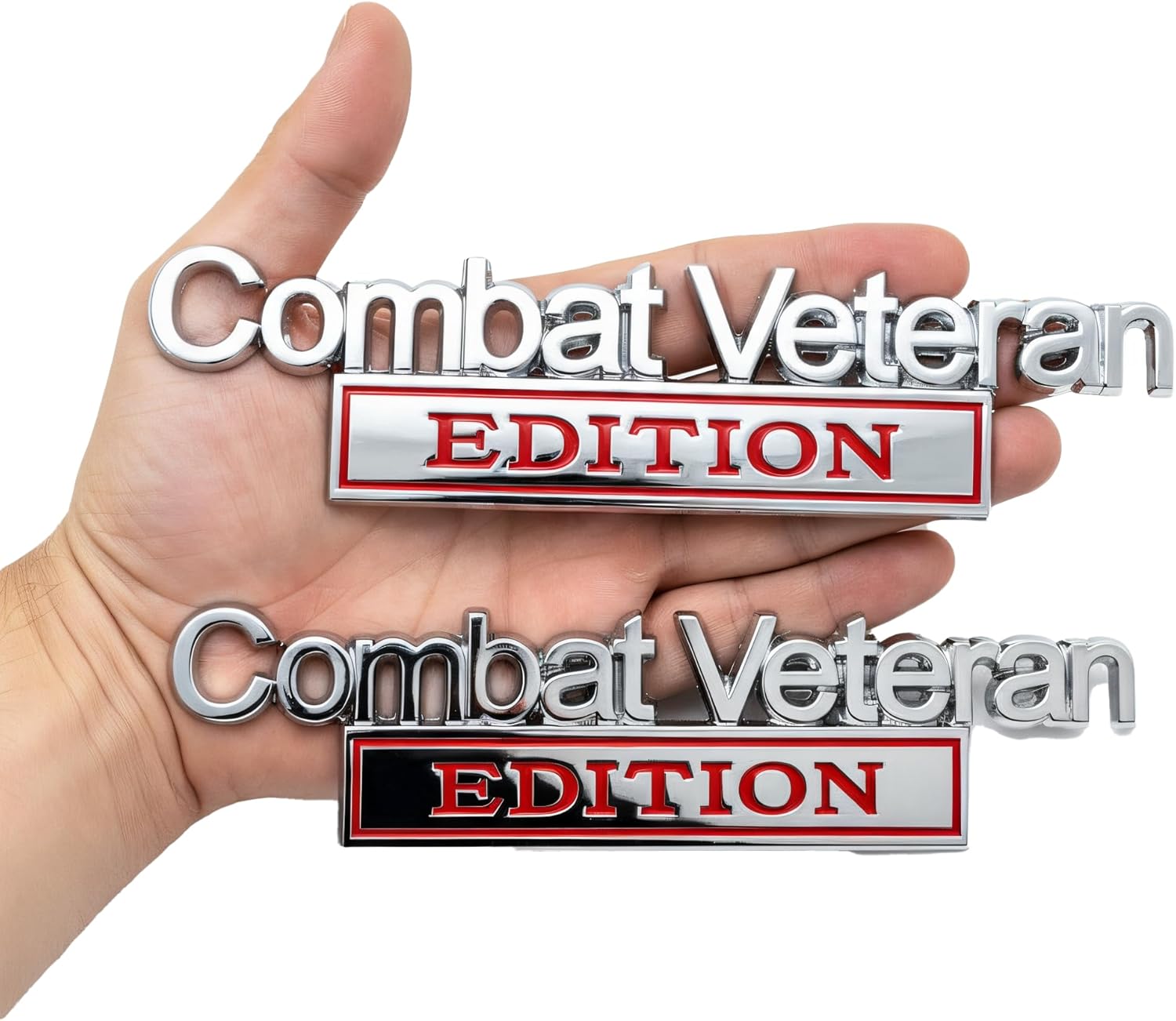 Show your military pride with these premium 3D Combat Veteran Edition car emblems. This set includes two high-quality badges designed specifically for veterans who served in combat operations. The bold, dimensional lettering creates a striking statement on any vehicle's exterior, whether mounted on fenders, doors, or other suitable surfaces. These durable emblems are engineered to withstand various weather conditions and maintain their distinctive appearance. Perfect for personalizing your truck, SUV, or car, these military-themed badges offer a sophisticated way to display your service history. The adhesive backing allows for straightforward installation while ensuring the emblems remain securely attached. Each piece in this two-pack features precise detailing that honors the commitment and sacrifice of combat veterans. These emblems serve as a tasteful reminder of military service while adding a distinguished touch to your vehicle's appearance.